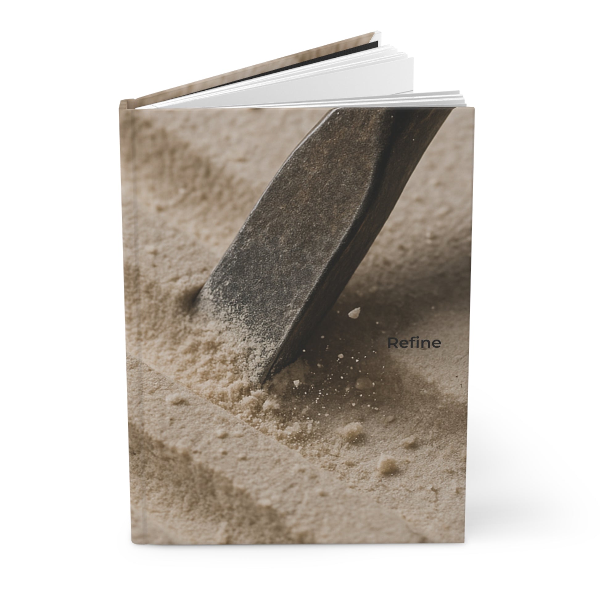 The Refine Journal is designed to help you shape ideas, improve what you've started, and turn rough drafts into something polished. The matte hardcover features a carving tool cutting clean lines through stone - a symbol of patience, precision, and the art of refinement.